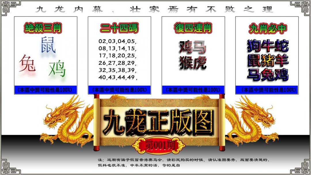 | 001期:【牛29-兔39-鸡45-鼠06-羊11-马12-】 |